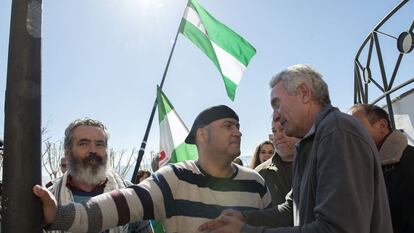 Andrés Bódalo participa en una concentración convocada por el sindicato SAT, al que pertenece