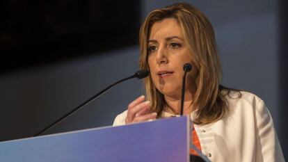 La presidenta de la Junta de Andalucía, Susana Díaz, ha certificado las directrices dadas al PSOE en la comunidad: evitar posicionarse públicamente antes de la reunión del comité federal del sábado, donde se abordará el aplazamiento del congreso previsto para mayo; evitar figurar como un escollo en el diálogo abierto entre el socialista Pedro Sánchez y el líder de Podemos, Pablo Iglesias; y no lanzar aún sus opciones a aspirar a la secretaría general del PSOE. La presidenta andaluza ha afirmado que se ha puesto en contacto con Sánchez para ofrecerle su colaboración, pero, en línea con el recelo andaluz hacia Podemos, no ha evitado ironizar sobre Pablo Iglesias, de quien ha dicho que, en la primera reunión, ha exhibido su “faceta de artista al renunciar a aquello que no se tiene, cederlo a otro compañero y no hablar de los problemas de los ciudadanos”.