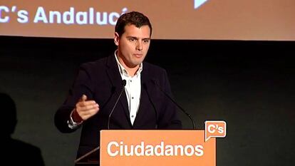 El líder de Ciudadanos ha presumido de los logros cosechados por su partido en Andalucía tras facilitar la investidura de la socialista Susana Díaz. “Controlar con nueve diputados un gobierno que nunca ha sido controlado, ya es algo”, ha apuntado como balance de este año de apoyo al PSOE en la Junta, en la que este partido está al frente desde hace más de 30 años.