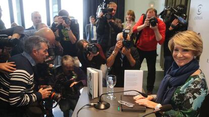 Esperanza Aguirre ha presentado este martes en Madrid su primer libro, un volumen de 344 páginas que, según su editora, "ni sus amigos ni sus adversarios podrán dejar de leer". La expresidenta madrileña barajó titularlo "La refundación de la derecha española" y "No me resigno". Finalmente, se quedó en Yo no me callo (Espasa). Aguirre ha insistido en que no lo publica ahora "para fastidiar", pero ha admitido que no se lo ha enviado al presidente del Gobierno en funciones y líder de PP, Mariano Rajoy, el hombre al que acusa de haber hecho una gestión "lamentable" del caso Bárcenas y de enviarle un SMS "letal para la reputación del partido". Paradójicamente, Aguirre ha callado este martes cuando se le ha preguntado si cree que Rajoy es el mejor líder del PP o si debe marcharse. "Yo he venido a hablar de mi libro".