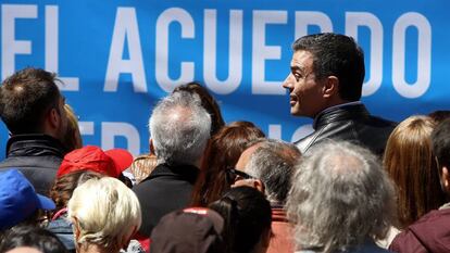 La fórmula de un gobierno del PP y del PSOE tras las elecciones del 26 de junio la descartará Sánchez desde la noche electoral, sean cuales sean los resultados, aseguran en su entorno. Un adelanto de sus intenciones la expresó el sábado en la parte final del comité federal, ya sin papeles, y en un tono enérgico, señalan las fuentes informantes. “Nosotros no vamos a pactar con el PP. Nosotros somos un partido con un proyecto distinto; ser socialista es un forma de vivir y entender la vida radicalmente distinta a la que representa el PP. ¿Estamos o no estamos de acuerdo con eso?”, dijo. “Nuestro adversario es el PP”, insistió. Las fuentes cercanas a Sánchez aclaran que no se trata solo de descartar un acuerdo con Mariano Rajoy y que el acercamiento sería posible con otro candidato. En ningún caso, con nadie del PP, insisten.