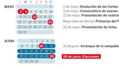 A los 10 días hay que comunicar las coalición electorales y el 18 de mayo las listas de las candidaturas. La campaña empezará el 10 de junio y terminará la noche del 24, cuando arranque la jornada de reflexión.