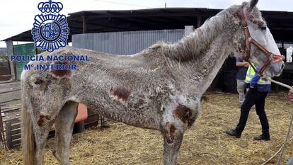 Según detalla la Policía, entre los 22 equinos de la finca se ha localizado un poni que tuvo que ser sacrificado al estar indicada la eutanasia por un veterinario, ya que presentaba "una lesión incurable en una de sus patas que le provocaban un sufrimiento continuo y que no podía ser paliado". Asimismo, se encontraron dos yeguas en un estado de salud "crítico", de forma que una de ellas presentaba una "delgadez extrema", así como heridas infectadas y úlceras en gran parte de su cuerpo, principalmente en patas y lomo, y la otra yegua mostraba también una lesión ensangrentada en una de sus patas.