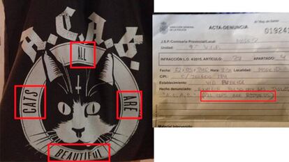 La sancionada llevaba un bolso con las siglas A.C.A.B. y el lema "all cats are beautiful"
