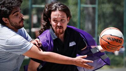 El candidato a la presidencia de Unidos Podemos, Pablo Iglesias, ha pasado la mañana junto a militantes y simpatizantes del partido en un ambiente distendido jugando varios partidos de fútbol y baloncesto en la Ciudad Universitaria de la Universidad Complutense de Madrid. “No estoy nervioso”, ha dicho ante el posible "cambio" que se vivirá en España tras estas elecciones generales. "Hoy no es día para hablar de política", ha señalado y ha añadido que quiere "echar una pachanga con amigos para relajarse". "Creemos que podemos llegar a un acuerdo con el PSOE, veremos mañana", ha recalcado. Iglesias ha jugado al baloncesto ataviado con un chaleco de color morado, el mismo que el de su formación, para identificar a su equipo.
