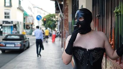 El relato sombrío de Sergio contrasta con el bullicio de Chueca, engalanado de banderas arcoíris y abarrotado por las fiestas del Orgullo Gay. Hoy se ha travestido de Lady Von Trash, un personaje que utiliza en ocasiones especiales como la sesión de fotos que le va a hacer un amigo. Solo accede a salir en cámara con la máscara de látex de Lady Von Trash, después de que una cadena de televisión le engañara hace meses y no ocultara su cara en una entrevista. Los transeúntes se giran a su paso. El guardia de seguridad de un edificio exclama: “Qué miedo”. Sergio dice que su forma de ser le ha ayudado a seguir adelante, a contar su historia y a salir a la calle vestido de su álter ego sin importarle el murmullo de la gente.