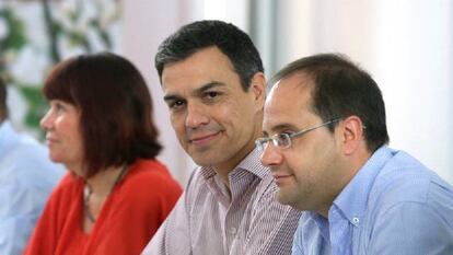 La unidad del PSOE es sólida respecto a la respuesta que saldrá de este comité federal a la investidura de Mariano Rajoy: no. Y se irá apreciando en las reuniones del secretario general con los líderes territoriales. Así fue ayer en la primera que mantuvo con las secretarias generales del PSE-EE, Idoia Mendia, y del PSOE-M, Sara Hernández. Las dirigentes vasca y madrileña depositaron en Rajoy la tarea de forjar una mayoría que le apoye sin contar con el PSOE. La respuesta de Mendia a las preguntas de los informadores sobre si podría convocar otro comité federal más adelante pareció abrir la puerta a un cambio de posición.