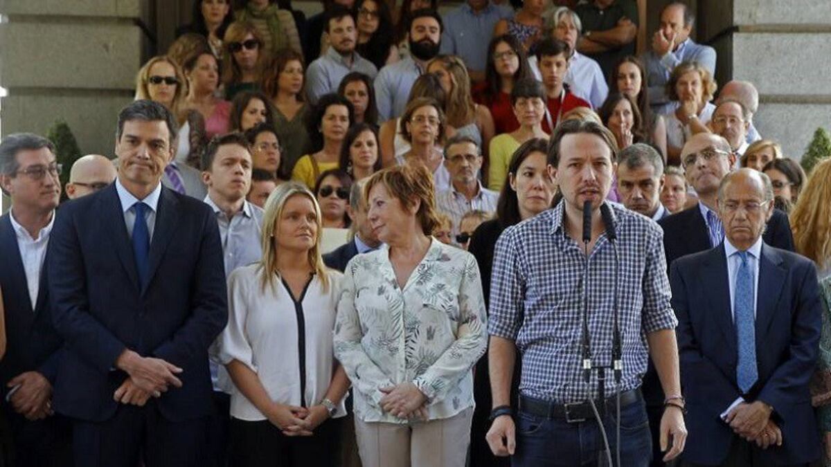 Todas las instituciones públicas guardaron un minuto de silencio. Los líderes del PSOE y de Podemos intervinieron en el Congreso de los Diputados, donde también hablaron la vicepresidenta de la Cámara baja, la popular Celia Villalobos, la presidenta de la Fundación Víctimas del Terrorismo, María del Mar Blanco, y el diputado de Ciudadanos Ignacio Prendes.