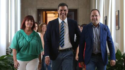 En la víspera de la constitución de las Cortes, este martes, el líder del PSOE ha reunido a diputados, senadores y eurodiputados para decir ante ellos lo que ya expresó el pasado 9 de julio en el comité federal. El PSOE no facilitará la investidura del presidente del PP. Sí se ha permitido Sánchez enumerar las acciones que debe emprender su adversario. "Primero, que el 2, 3 y 5 de agosto va a haber sesión de investidura y que Rajoy se debe presentar". Sin especificar si antes o después de esa sesión, ha añadido: "Rajoy tiene que articular una mayoría parlamentaria y ya le digo que no puede contar con el PSOE". El tercer consejo fue que el líder del PP "tiene que hacer un Gobierno conservador pero no de corte continuista".