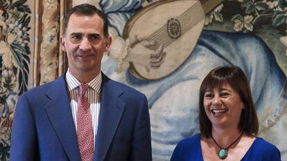Felipe VI recibe a la presidenta del Gobierno balear, Francina Armengol, en el Palacio de la Almudaina