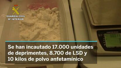 La Guardia Civil ha desmantelado en Leioa (Bizkaia) un centro desde el que se producían, empaquetaban y expedían por correo ordinario a Estados Unidos, Europa y Oceanía nuevas drogas psicoactivas. Los agentes han detenido a dos británicos y se han incautado de 17.000 unidades de deprimentes (benzodiacepínicos), de 8.700 dosis de sustancias alucinógenas (LSD), 10 kilos de polvo estimulante de tipo anfetamínico además de básculas de precisión, equipos informáticos, sobres, sellos y diversa documentación para la fabricación y distribución de estas sustancias. La operación ha sido denominada Kit Postal.