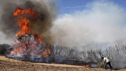 Un hombre combate las llamas del incendio en Tafalla.Foto: atlas | Vídeo: JESÚS DIGES (EFE) / ATLAS