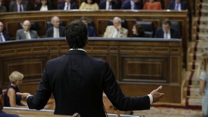 Sin ánimo de ofender a Ciudadanos, el político socialista ha diferenciado su acuerdo del alcanzado con el PP. "El programa que usted ha presentado no significa un cambio: el centenar de propuestas solo matizan o atenúan lo anterior". El acuerdo del PSOE con el partido centrista fue para cambiar el Gobierno y el de ahora "es para mantener a Mariano Rajoy. Como con sus votos no puede mantener su Gobierno, ahora quiere que quienes nos hemos opuesto le sostengamos".