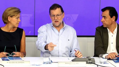 El PP reunió este sábado a su comité ejecutivo nacional, convocado de urgencia para escenificar un cierre de filas en torno a Mariano Rajoy tras su investidura fallida. Pero la elección de José Manuel Soria para representar a España en el Banco Mundial, cinco meses después de su dimisión por los ‘papeles de Panamá’, provocó malestar entre los miembros de la ejecutiva. La número dos, Dolores de Cospedal, negó que Soria hubiese dimitido por nada relacionado con la corrupción y aseguró que todo el partido había trasladado su “apoyo rotundo” a Rajoy. “Es y va a seguir siendo nuestro candidato si hay terceras elecciones”, declaró.