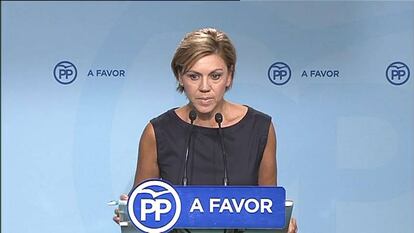 La secretaria general del PP insistió en que no hay alternativas “salvo que el PSOE acepte peajes inaceptables tanto para España como para el propio PSOE”, en alusión al referéndum que reclaman los independentistas catalanes, que animan a Sánchez a intentar un acuerdo.