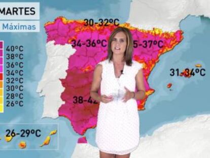 El calor no da tregua. Este martes, 38 provincias estarán en alerta por altas temperaturas, que alcanzarán en algunas de ellas los 42 grados centígrados, según el pronóstico de la Agencia Estatal de Meteorología (AEMET).