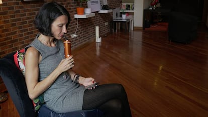 Carola Pérez ha olvidado cómo es vivir sin dolor. A los 11 años, en una caída mientras patinaba, se fracturó el coxis de tal forma que, con la mayoría de edad y tras intentar todo por salvar el hueso, los médicos decidieron extirpárselo. Esta mujer de 37 años ha pasado 11 veces por el quirófano y va camino de otra. Un Día de la Madre, harta de sufrir y de los efectos secundarios de la medicación, pidió a sus padres que la ayudaran a morir. "Estaba en un túnel y no había ni una llamita de luz, no había nada", explica en la sede de la asociación Dosemociones —que fundó con sus padres—, donde apoya y asesora a pacientes que, como ella, decidieron un día probar con el cannabis medicinal. "Lo recuerdo como si fuera hoy, fue una infusión en un vaso de leche y, de repente, una sensación de alivio, de calma... Y de, por un momento, dejar de preocuparme por el dolor".
