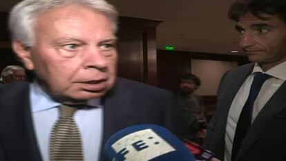 El exlíder del PSOE ha opinado que Sánchez debería dimitir si el comité federal del partido rechaza el próximo sábado su plan de convocar un congreso en diciembre, precedido por unas primarias para elegir líder el 23 de octubre. "En la cultura del partido, si el comité federal fija una posición, la que sea, abstención, no abstención, voto en contra o medio pensionista, esa posición mayoritaria la asume todo el mundo y si [el secretario general] no la quiere asumir, obviamente tiene que dimitir", ha sostenido González. Y ha añadido: "Alguno tendrá que asumir responsabilidad política por ir de derrota en derrota se supone que hasta la victoria final".