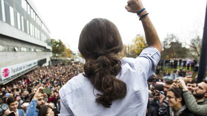 El líder de Podemos reivindica el puño cerrado frente al símbolo de victoria de su 'número dos'
