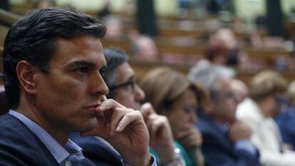 Había interés en saber cómo se desempeñaba el PSOE en la oposición profiláctica. Salió a hablar Tu Quoque Hernando, a quien Sánchez observó bajar hacia la tribuna como si el hemiciclo fuese la escalera de caracol de Vértigo, esa película en la que un hombre quiere convertir su partido político a semejanza del que fue. Hernando es el protagonista trágico de estos días, el antihéroe al que cualquier novelista debe volver su mirada para entrar cinco minutos en su cabeza; Hernando ahora mismo es un Premio Nacional andante, un hombre cuya turbación no puede abarcar el periodismo, sino la ficción: hay que narrarlo desde la omnisciencia. Su mejor frase fue su mejor tumba: “Señor Rajoy, no nos gusta como presidente, pero España nos necesita”. O sea, España nos necesita para que usted la gobierne.