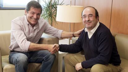 No hay acuerdo en lo organizativo porque el desacuerdo es profundo en lo político. Esta es la conclusión que se extrae de la reunión que han mantenido este lunes Javier Fernández y Miquel Iceta en la sede federal del PSOE. La buena relación personal entre ambos políticos —“Es difícil discutir con Javier Fernández”, ha dicho Iceta; “es muy difícil discutir con Miquel Iceta”, le ha correspondido Fernández— ha salvado la reunión de este lunes y ha determinado que se hayan dado la oportunidad de acercar posiciones. En dos meses, a mediados de enero, una comisión compuesta por varios miembros de cada parte habrá tenido que redactar un nuevo protocolo de relación que sustituya al firmado en 1978.