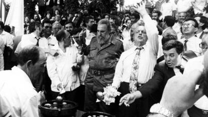 La fría acogida que, según la delegación cubana, recibió en la cumbre de 1992 y los temores por su seguridad llevó al líder a acortar su viaje. Antes de visitar el pueblo de su padre, en cualquier caso, se desplazó a Sevilla. Estuvo en la Expo y en el Pabellón de Cuba y se fue a Galicia. En Láncara se declaró “nieto de campesinos pobres” y aseguró que su padre siempre contempló la posibilidad de regresar a Galicia. Fraga justificó su relación con el líder cubano manteniendo que los gallegos saben distinguir entre lo público y lo privado.