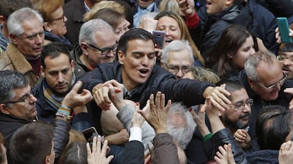 Más de un millar de militantes y simpatizantes del PSOE, según cálculos de este diario, han asistido en Xirivella (Valencia) a la reaparición de Pedro Sánchez tras su renuncia como diputado el pasado 29 de octubre, horas antes de la investidura como presidente de Mariano Rajoy. El ex secretario general de los socialistas ha cuestionado la labor de la gestora y ha reclamado la celebración inmediata de un congreso, para el que todavía no se ha fijado fecha, en el que se resuelva el liderazgo del partido. "Mis primeras palabras son para quienes están en Ferraz: queremos votar en primarias y un congreso que sirva para el cambio y unidad del PSOE", ha afirmado entre vítores, mientras algunos de los presentes ondeaban las pancartas de plataformas de "militantes en pie" con lemas a favor de un congreso "ya".