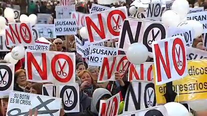 Ni la lluvia ni el reciente acuerdo de la Junta de Andalucía con cuatro centrales sindicales para mantener los hospitales existentes en Granada con los servicios que han prestado hasta ahora consiguió desactivar la protesta convocada en Jaén por los colectivos agrupados en la plataforma “Por una sanidad pública y digna”. Unas 2.000 personas, que acudieron en una veintena de autobuses y en sus vehículos desde Granada, se han concentrado en la capital jiennense coincidiendo con el acto convocado por el PSOE para conmemorar los 10 años de la ley de Dependencia.