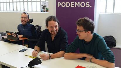 El líder de Podemos, Pablo Iglesias, y su número dos, Íñigo Errejón, han pactado este sábado tras una reunión a solas de dos horas la composición del equipo que organizará el próximo congreso del partido, previsto para el segundo fin de semana de febrero. Ambos dirigentes han situado a igual número de afines en el órgano, compuesto por siete miembros: tres pablistas, tres errejonistas más uno perteneciente a la tercera familia del partido, los Anticapitalistas. Pablo Echenique, secretario de Organización y afín a Iglesias, ejercerá de portavoz, junto con la diputada autonómica Clara Serra, del sector errejonista. Errejón ha situado también en ese equipo al exsecretario de Organización, Sergio Pascual, destituido por Iglesias hace nueve meses.