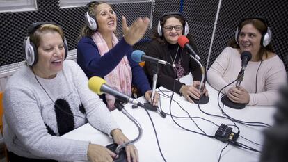 Sentadas alrededor de una pequeña mesa blanca hablan de sus preocupaciones. De las suyas y de las de sus vecinos. Conversan sobre el desempleo, la pobreza, la falta de seguridad, la libertad de las mujeres... No se reúnen en el salón de casa, ni en una cafetería, lo hacen frente a los micrófonos de una radio comunitaria. Cuatro amas de casa del barrio sevillano de Polígono Sur, marcado históricamente por la exclusión social y el narcotráfico, conducen desde hace cinco años un programa radiofónico (Mujeres por el barrio) que no solo pretende mostrar la realidad y los problemas de esta deprimida zona sino también para dar voz y poder a la mujer. “Ya es hora de que todas nos enteremos de que valemos para mucho más”, afirma rotunda Carmen Lorence.