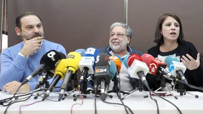 No estaba previsto que los reunidos salieran públicamente a hablar pero, unavez que se conoció el lugar del encuentro —una sala de juntas dentro de un edificio de oficinas del centro de Madrid alquilada por unas horas y abonada por los asistentes—, han decidido comparecer ante los medios de comunicación. El diputado nacional y secretario general del PSOE de Valencia, José Luis Ábalos, la diputada asturiana Adriana Lastra y el alcalde sevillano de Dos Hermanas, Francisco Toscano, han ejercido de portavoces.