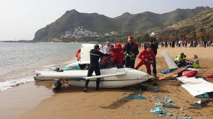El suceso ha ocurrido este martes después de que el aeropuerto de Tenerife Norte recibiera la alerta de que una avioneta tenía problemas e iba a realizar un aterrizaje de emergencia en el aeródromo. Minutos después, los bañistas informaron del accidente.