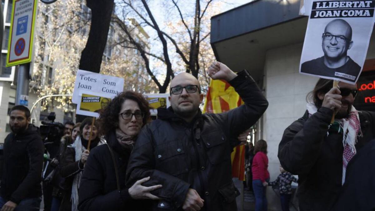 El concejal de la CUP de Vic Joan Coma, detenido el martes por no acudir a declarar ante el juez que lo investiga por un presunto delito de incitación a la sedición, ha quedado este miércoles en libertad provisional después de que se le ordenara entregar el pasaporte y de que se le comunicara la obligación de comparecer cuando se lo convoque. El arresto del edil ha aumentado la tensión entre los partidos independentistas catalanes y el Gobierno. Anna Gabriel, diputada autonómica de la CUP; Anna Erra, alcaldesa de Vic; el senador Bernat Picornell; o el diputado nacional Joan Capdevila, ambos de ERC, han acudido este miércoles a la Audiencia Nacional para mostrar su apoyo al concejal. Al tiempo, Rafael Catalá, el ministro de Justicia, ha acusado de "minar la democracia" a los dirigentes catalanes que han mostrado su apoyo al detenido.