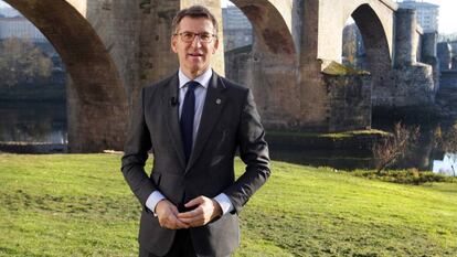 En una grabación realizada hace dos días, al borde del río Miño y bajo el sol frío del invierno en Ourense, el presidente de la Xunta de Galicia, Alberto Núñez Feijóo, ha aprovechado su mensaje de Fin de Año, emitido este sábado pasadas las dos de la tarde, para reivindicar la España "equilibrada y solidaria que consagra la Constitución hecha y refrendada por todos". "Galicia no quiere más que nadie pero tampoco menos", ha proclamado durante su discurso en clave política y en gallego, en el que ha recordado a los telespectadores de la cadena autonómica su aplastante resultado electoral de septiembre. La comunidad, ha dicho, "no aspira a ningún privilegio, pero tampoco los aprueba. En materia de financiación autonómica o en infraestructuras como el AVE, el interés permanente de Galicia está y estará basado en la justicia y en el trato ecuánime".