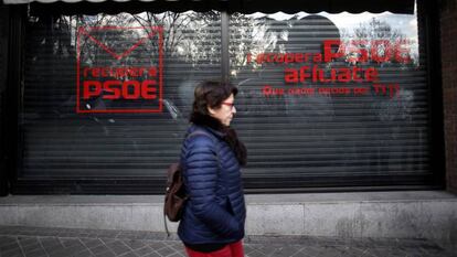"Afíliate. Que nadie decida por ti", reza el mensaje colocado en los ventanales del establecimiento alquilado por Recupera PSOE. Sus responsables critican el funcionamiento de la herramienta telemática del partido disponible para los afiliados y niegan "usurpación alguna" de la imagen del PSOE. "Nuestro logo corporativo es un sobre de votación debidamente registrado", argumentan. "Nuestro trabajo de asesoramiento de la militancia va a continuar porque es uno de los principios de los afiliados socialistas. A la gestora no la debe incomodar que cuanta más gente se afilie al partido, mejor”, razonan.