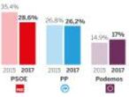 Según el sondeo, el PSOE obtendría el apoyo del 28,6% de los andaluces y el PP acortaría distancias con el 26,2%. Podemos se mantendría como tercera fuerza (17%) seguido de Ciudadanos (12,1%) e Izquierda Unida (5,7%). "Cada vez más andaluces ven claro que la etapa del socialismo se está acabando y que la única alternativa es el PP", ha asegurado el presidente de los populares andaluces, Juan Manuel Moreno, quien ha asegurado que los resultados del Egopa son "un motivo más" para que Díaz quiera "hacer las maletas e irse" de Andalucía. "Nadie quiere asumir una posible derrota en las autonómicas", ha afirmado Moreno. "La mayoría social está hoy por hoy con el PP y que la gente cada vez está más desencantada y hay más hartazgo con la gestión socialista", ha defendido.