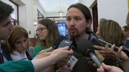 Las imágenes captadas por los fotógrafos del Congreso muestran que la discusión empezó con una reprimenda de Iglesias. Con gesto serio, el líder reprochó a su número dos la postura demasiado firme, a su juicio, que este estaba manteniendo en la negociación sobre el órgano de garantías. En varias ocasiones le puso la mano en el hombro. El portavoz parlamentario de Podemos le rebatió también apasionadamente. No elevaron la voz, pero sus gestos demostraron un profundo desencuentro, llamativo toda vez que son los dos máximos dirigentes del mismo partido.