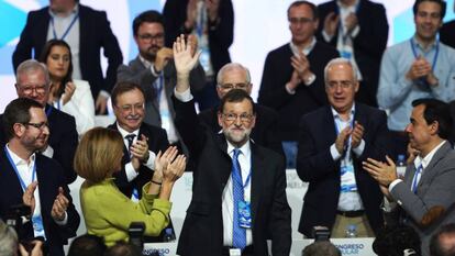 Mariano Rajoy preservó para su proclamación como reafirmado presidente del PP y candidato a la Presidencia del Gobierno su perfil más institucional e hilvanó un discurso como si estuviera en el Palacio de La Moncloa basado en dos ejes: la necesidad ahora de más diálogo entre todos los actores políticos del nuevo mapa del país y ratificación de su estrategia única frente al desafío separatista en Cataluña. Sobre la demanda de más diálogo avisó de que está dispuesto a todo pero sin enmendar lo hecho y que cree que ha funcionado en su reciente mandato. Es decir, sin "contrarreformas". Sobre Cataluña no aportó novedad alguna pero sí más contundencia en su oposición al referéndum. Solo está dispuesto a cumplir la ley y la Constitución actual y rechaza "tratar o comerciar" nada sobre un proceso independentista que descalificó como "una amputación terrible y dolorosa que no hay cirujano que salve".