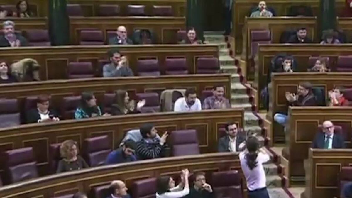 Sin embargo, a la salida del pleno, el propio Iglesias ha resumido el incidente como "una actitud muy agresiva por parte de algunos diputados del PP que han empezado a hacer gestos ostentosos señalándonos". "Parece que les molesta mucho que en este país se hable de las puertas giratorias", ha apostillado a su explicación. El portavoz de Unidos Podemos, Íñigo Errejón, ha abundado en esta versión: 'No me ha gustado que nos señalaran algunos diputados del PP que llegaron a decir 'a ver si voy a bajar''.