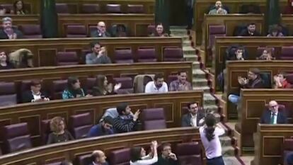 El incidente ha ocurrido en la sesión de control al Gobierno, mientras el ministro de Hacienda, Cristóbal Montoro, contestaba una pregunta del diputado de Unidos Podemos Antonio Gómez Reino sobre el nombramiento del exdirector general de la Guardia Civil Arsenio Fernández de Mesa como consejero de Red Eléctrica de España (REE).
