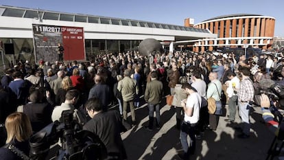 Los recuerdos se han amontonado, de nuevo, a las puertas de Atocha. Recuerdos y claveles. Y memoria para homenajear a las víctimas del 11-M y a sus familias. Para no olvidar el mayor atentado que ha sufrido España. Y para reivindicar que aún queda mucho trabajo por hacer. Aunque hayan pasado ya 13 años. “Va siendo hora de empezar a construir el relato objetivo de lo que ocurrió antes, durante y después del 11 de marzo de 2004”, ha apuntado este sábado Eulogio Paz, presidente de la Asociación 11-M, durante los actos convocados a las diez de la mañana frente a la estación de tren del centro de la capital por el decimotercer aniversario de la masacre yihadista.