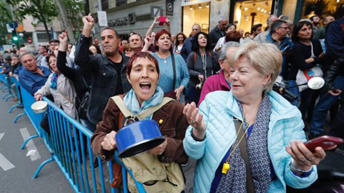 Centenares de personas protestan contra la corrupción con una cacerolada frente a la sede del PP