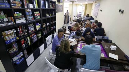 Se acerca la noche y el trasiego de personas que entra a echar unas partidas no cesa, aunque sea un día de diario. El peaje de tres euros por acceder no disuade a la clientela, que tiene la opción de llevar sus propios juegos de mesa. “Vamos con 20 años de retraso. No solo existen el Risk o el Monopoly”, reflexionan Salvador e Ismael, dos amigos que llevan toda la tarde divirtiéndose con The Colonists, un juego de gestión de recursos.