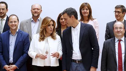 Los líderes históricos del partido están asustados ante la visceralidad en la que se ha sumido. Se mueven entre un claro posicionamiento que exprese en qué modelo se reconocen —Felipe González, José Luis Rodríguez Zapatero o Alfonso Guerra se dejaron ver en el acto de Susana Díaz en el que anunció su candidatura—, la distancia, la resignación o un optimismo que puede sonar voluntarioso. “Yo creo que el PSOE está en una encrucijada. Pero las encrucijadas no son malas. Es una encrucijada como en la que estamos todos, incluidos los periódicos”, dice Solana. “La nuestra es más importante porque queremos representar a otros y por lo tanto se debe resolver mejor. Este es un partido que quiere gobernar y que tiene la voluntad de gobernar. Así ha sido siempre. No ha sido un partido de frases sino un partido de Gobierno”.