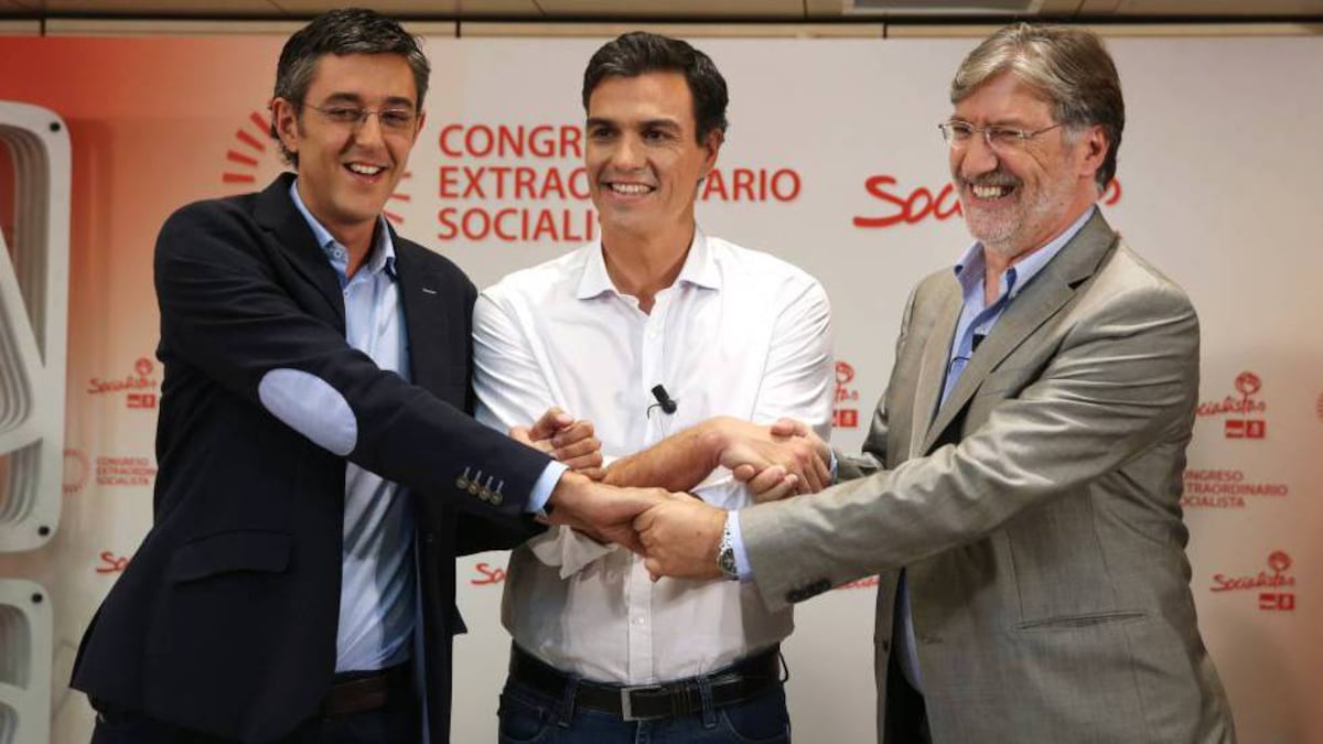 SANCHEZ-MADINA-TAPIAS. El 13 de julio de 2014, Pedro Sánchez fue elegido secretario general del PSOE en primarias entre los militantes, frente a Eduardo Madina y José Antonio Pérez Tapias.