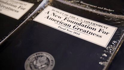 El presupuesto de un país es la plataforma que permite a un presidente ejecutar sus políticas, y Donald Trump acaba de poner números a sus prioridades. Propone unas cuentas para el año fiscal 2018 —del 1 de octubre próximo al 30 de septiembre de 2018— con el que busca ahorrar al contribuyente estadounidense en una década 3,6 billones de dólares (3,2 billones de euros, casi el triple del PIB español). Para lograrlo, recorta una amplia serie de partidas que benefician a los ciudadanos de rentas más bajas, como el programa que ayuda a financiar el elevado coste de las matrículas de los universitarios.