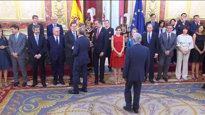 Se ocupa ahora de encabezarla Felipe VI, pero su discurso, igual que el de Ana Pastor, tuvo presente el papel catalizador del Juan Carlos I. Un motivo que hace difícil explicar el escrúpulo protocolario con que se ha hecho incompatible la “convivencia” del Rey actual con el pretérito.