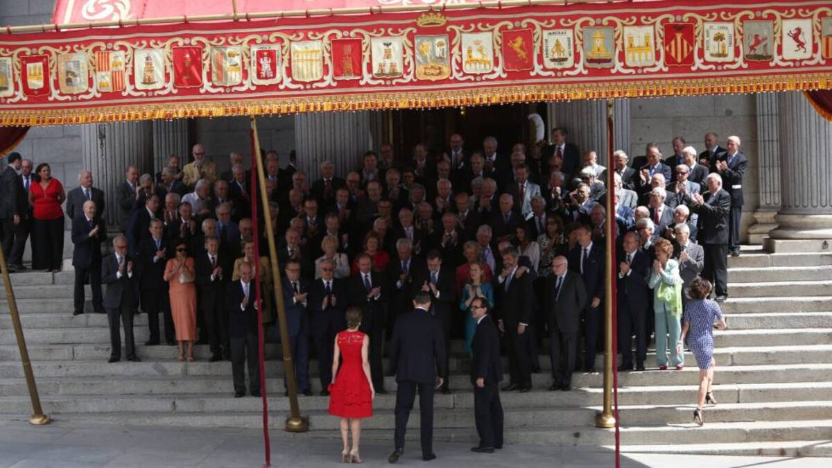 La extraña situación institucional se plasmó también en la difícil gestión protocolaria de un líder del PSOE sin escaño. Pedro Sánchez tuvo una posición relevante como líder de la oposición en el Salón de los Pasos Perdidos, pero asistió al acto en el hemiciclo aislado en la tribuna de invitados. Estaba justo detrás de José María Aznar, con el que apenas intercambió frases protocolarias. José Luis Rodríguez Zapatero no asistió.