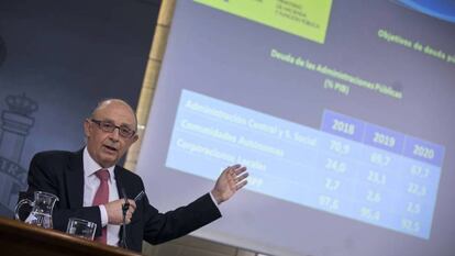 El ministro de Hacienda, Cristóbal Montoro, ha confirmado este lunes que habrá bajada de impuestos y en concreto del IRPF en 2018 como exige Ciudadanos para dar su respaldo a los próximos Presupuestos. Montoro ha presentado con el ministro de Economía, Luis de Guindos, y tras un Consejo de Ministros especial, los objetivos de estabilidad y el techo de gasto para 2018 en los que dibujó un panorama exultante que le llevó a la conclusión de que ahora si hay lugar para reducir la presión fiscal. El ministro ha señalado así que ahora "cabe" la mayoría de las solicitudes planteadas por sus socios de investidura y ha ratificado que las están estudiando para ponerlas en práctica en 2018: "Se pueden hacer y estoy seguro de que vamos a llegar a un acuerdo". Montoro ha sido mucho menos optimista sobre la posibilidad de llegar a casi ningún acuerdo con este PSOE de Pedro Sánchez.