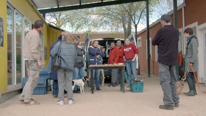 “Miedoso”, dicen algunas etiquetas sobre una mesa. Sirven para identificar a aquellos perros nerviosos, para que sean tratados con cuidado al intentar sacarlos del transportín en el que viajan. Se encuentran en una mesa junto al listado de los gatos que también irán a parar a albergues de seis ciudades distintas en Alemania. Cada uno tiene una placa con su nombre y un teléfono de contacto. “La pesadilla es que se escape alguno en el viaje”, dice Jutta Grohall, responsable de las adopciones en el extranjero de ALBA. “Hacemos los viajes a Alemania más o menos por necesidad, porque en España se abandonan muchos animales, pero se adoptan pocos”, explica la voluntaria de la asociación. Y aunque no da cifras exactas del número de mascotas abandonadas, en 2016 la organización acogió a 1.800. Según datos del Ministerio de Agricultura, cada año se dejan a su suerte alrededor del 2% de los perros registrados.